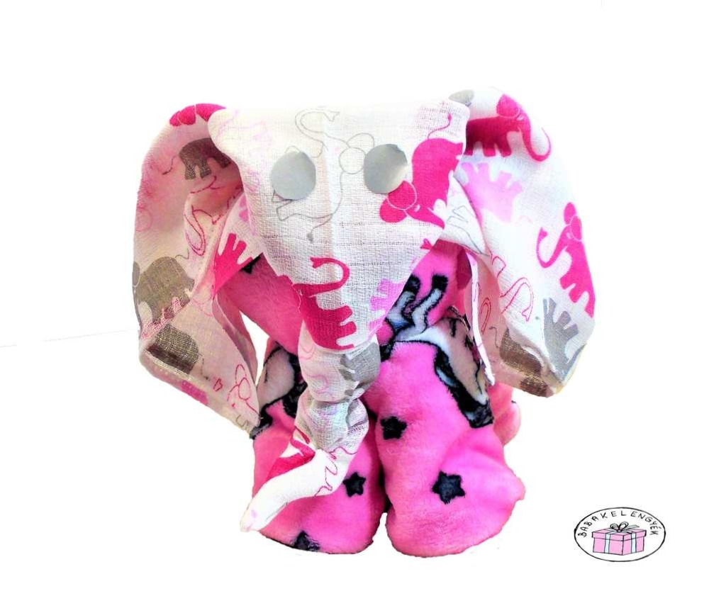 Az elefánt is csupa hasznos holmiból készült, teste pihe-puha pléd, feje pedig textilpelenkából formálódott.